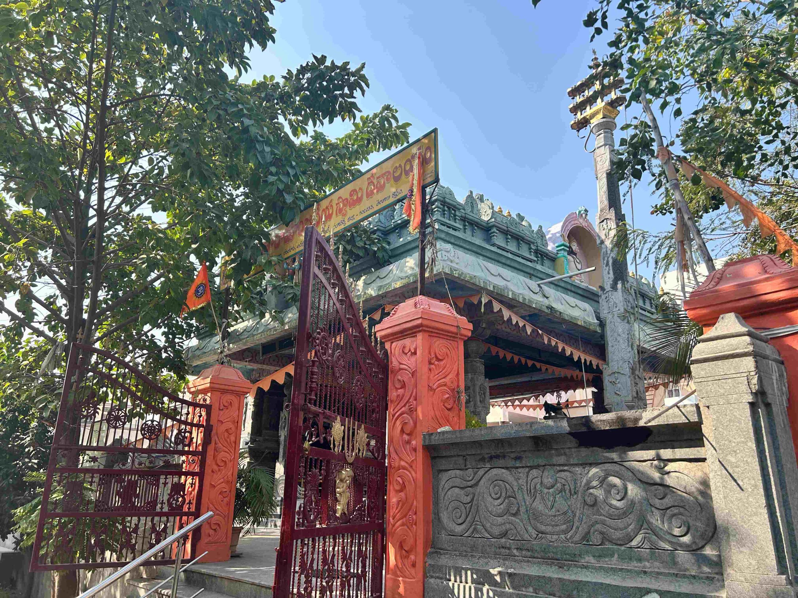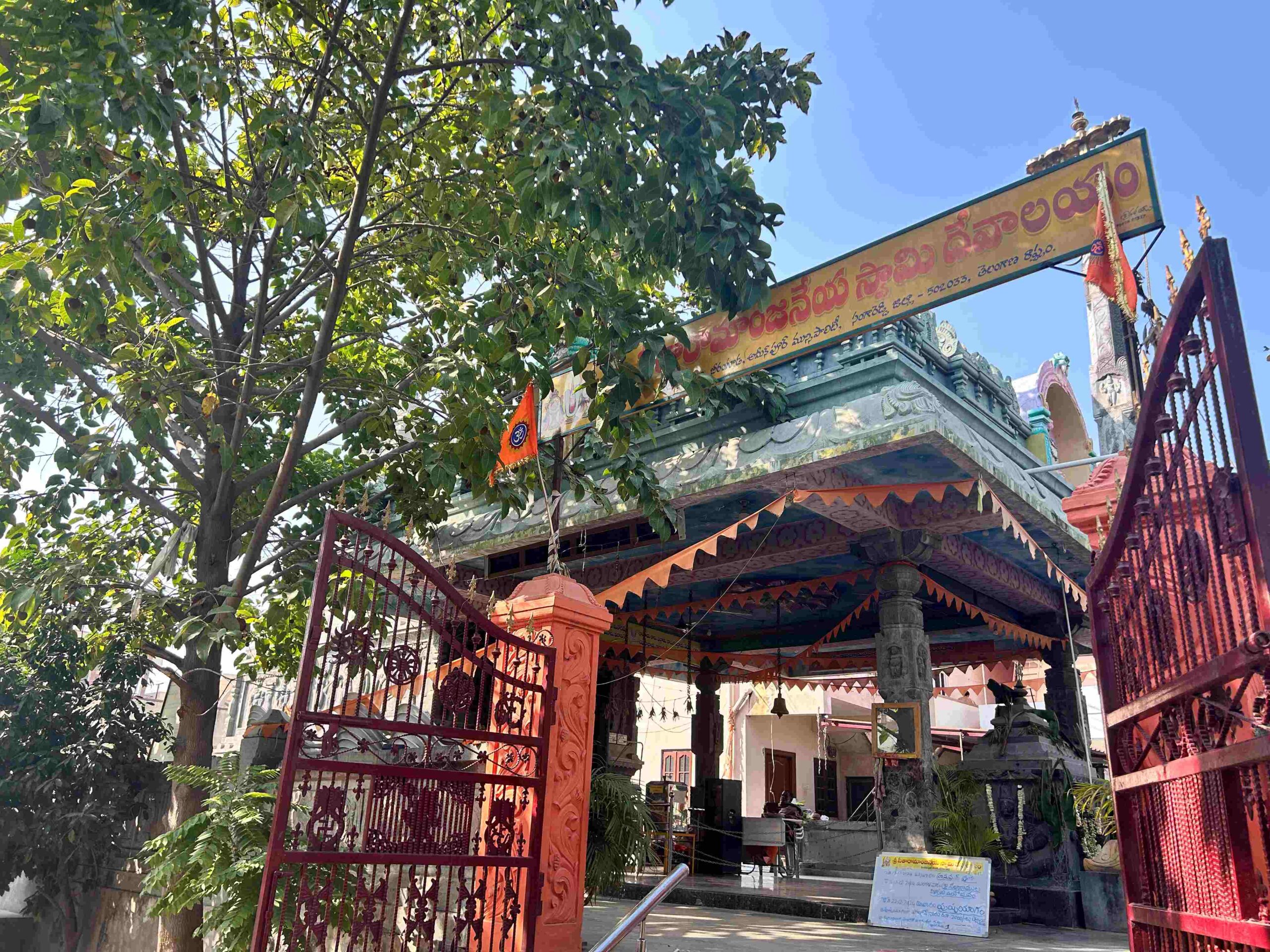 - Travel Guide 🚌This temple is in Vandanapuri colony in Beeramguda . If you are coming by public buses then you need to get down at Beeramguda kaman and take shared auto to reach this place. From Beeamguda - Krishnareddy pet road this temple is around 400 meters. You can see the temple arch from the main road. 🚉If you are coming by metro then you need to get down at Miyapur metro station and take public buses to reach beeramguda. 🚌ఈ ఆలయం బీరంగూడలోని వందనాపురి కాలనీలో ఉంది. మీరు పబ్లిక్ బస్సుల్లో వస్తుంటే బీరంగూడ కమాన్ వద్ద దిగి షేర్ ఆటోలో ఇక్కడికి చేరుకోవాలి. బీమ్గూడ - కృష్ణారెడ్డి పేట రోడ్డు నుండి ఈ ఆలయం 400 మీటర్ల దూరంలో ఉంది. ప్రధాన రహదారి నుండి మీరు ఆలయ తోరణాన్ని చూడవచ్చు. 🚉మీరు మెట్రోలో వస్తున్నట్లయితే, మీరు మియాపూర్ మెట్రో స్టేషన్లో దిగి బీరంగూడ చేరుకోవడానికి పబ్లిక్ బస్సులను తీసుకోవాలి.
