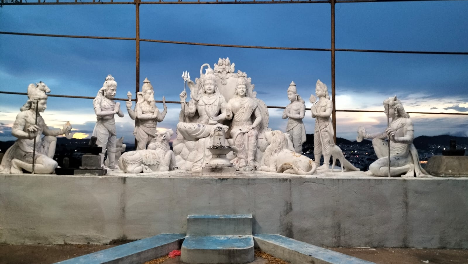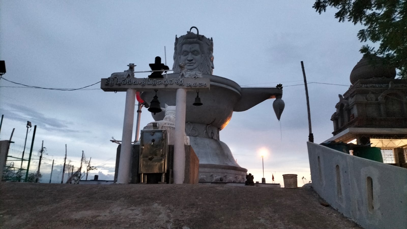 - Temple History This temple is on the hill and there are steps to reach the temple top. There are different idols of god are present at this place. This is one of the famous Saiva Kshetram in Vijayawada. Here we can see 40 feet Shiva lingam here. We can see entire Vijayawada from this place. We can see all Jyothrlinga & Asta Dasha Peetalu at this temple. This is 16 year old Temple. ఈ ఆలయం కొండపై ఉంది మరియు ఆలయ శిఖరానికి చేరుకోవడానికి మెట్లు ఉన్నాయి. ఈ ప్రదేశంలో వివిధ దేవుళ్ల విగ్రహాలు ఉన్నాయి. ఇది విజయవాడలోని ప్రసిద్ధ శైవ క్షేత్రాలలో ఒకటి. ఇక్కడ మనం 40 అడుగుల శివలింగాన్ని చూడవచ్చు. ఈ ప్రదేశం నుండి మనం విజయవాడ మొత్తాన్ని చూడవచ్చు. ఈ ఆలయంలో అన్ని జ్యోతిర్లింగాలు & అష్ట దశ పీఠాలు చూడవచ్చు. ఇది 16 సంవత్సరాల పురాతన ఆలయం.